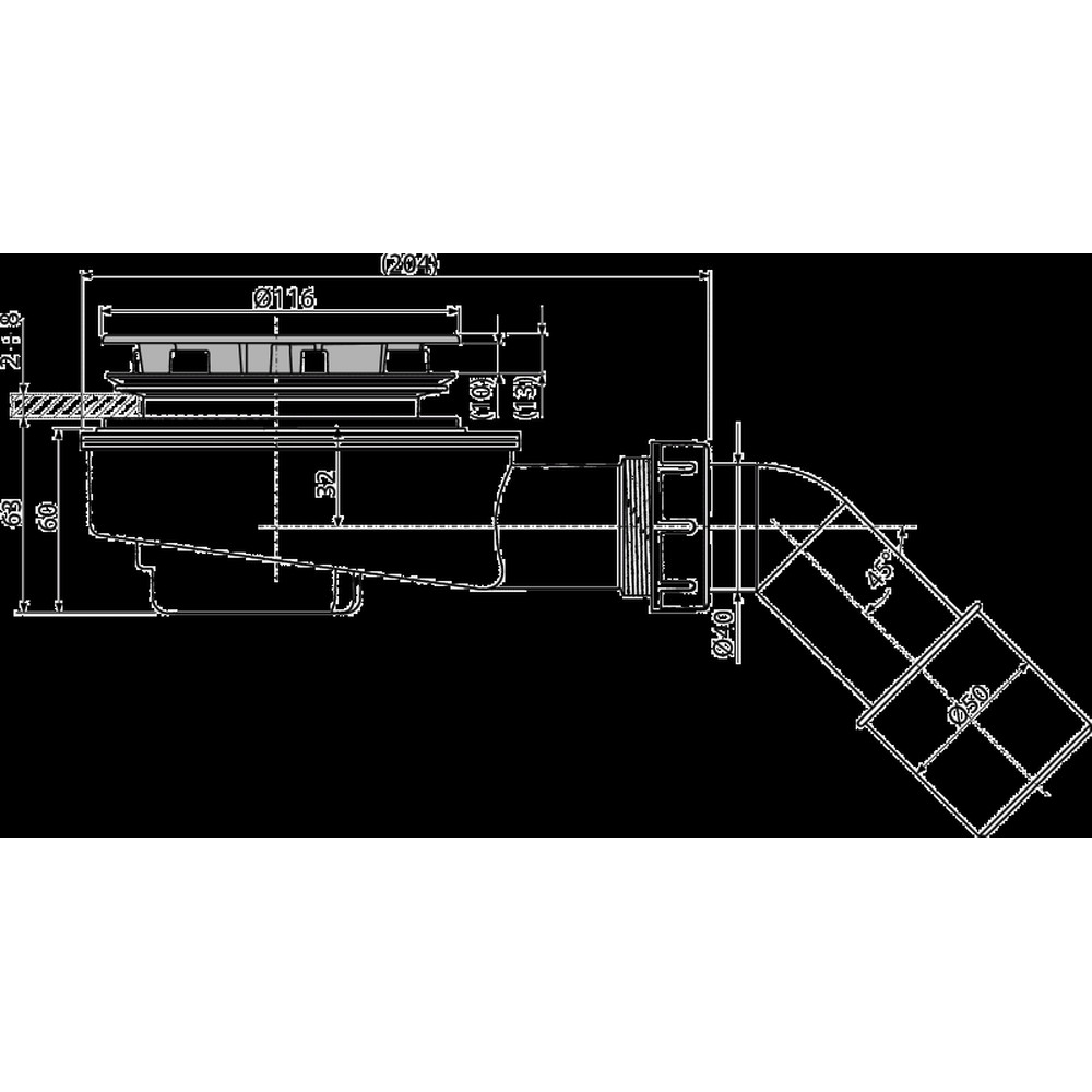 Zuhanyszifon, csökkentett, lefolyóméret 90 mm, DN 50, műanyag, króm-fényes
