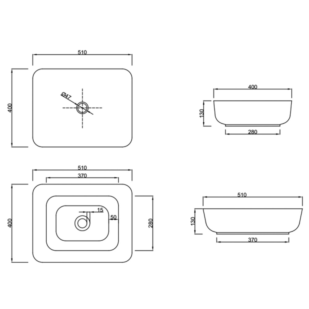 ATE mosdókagyló, négyszögletű, asztali, 51 cm, fehér
