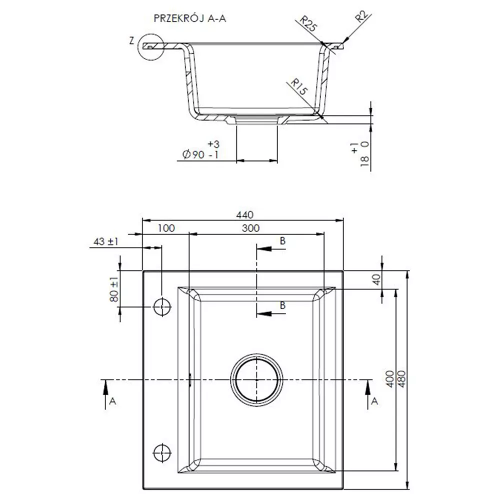 3. Mosogató gránit 1 medence csepptálcás