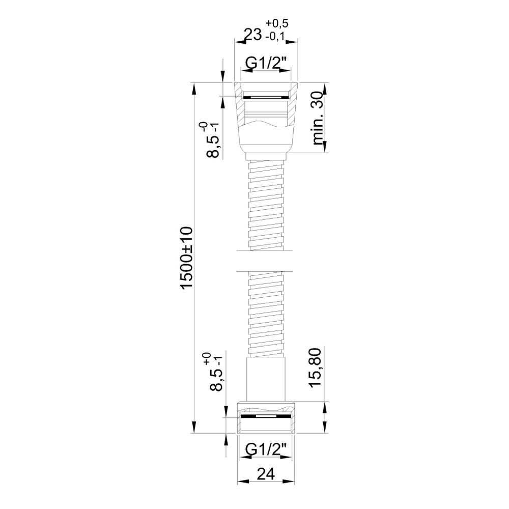 Dupla szövésű, 150 cm hosszúságú zuhanytömlő.