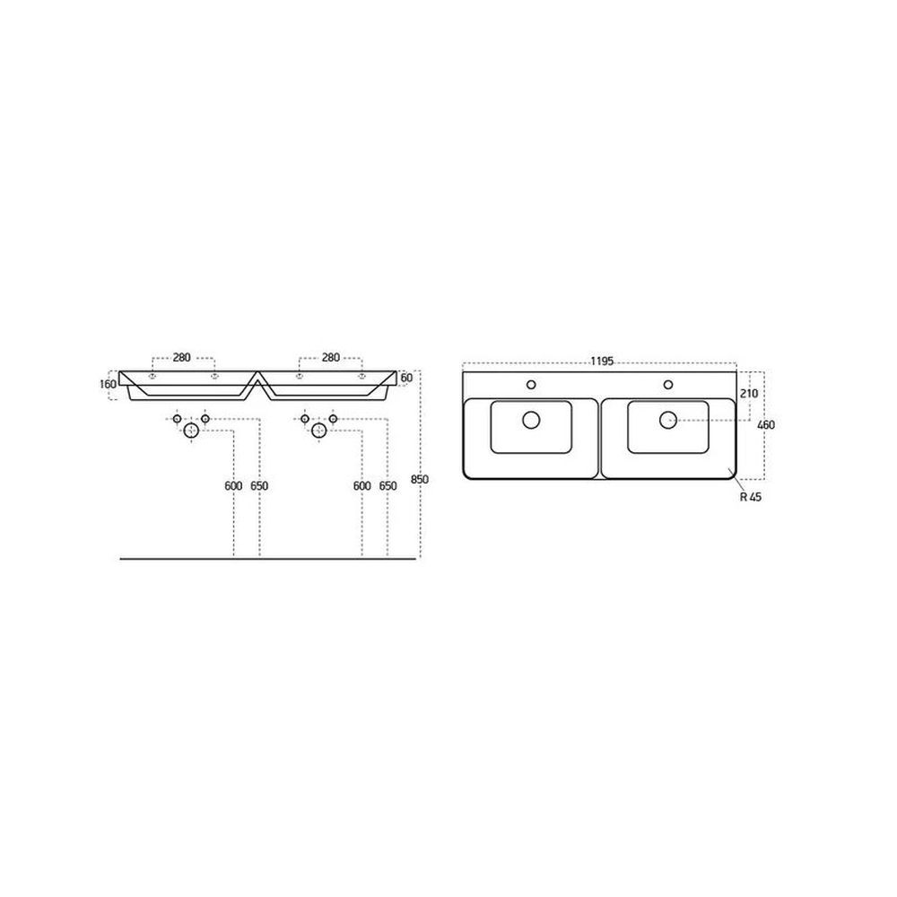 LUXURY - MATT FEKETE - porcelán mosdókagyló - dupla - 120 x 46 cm