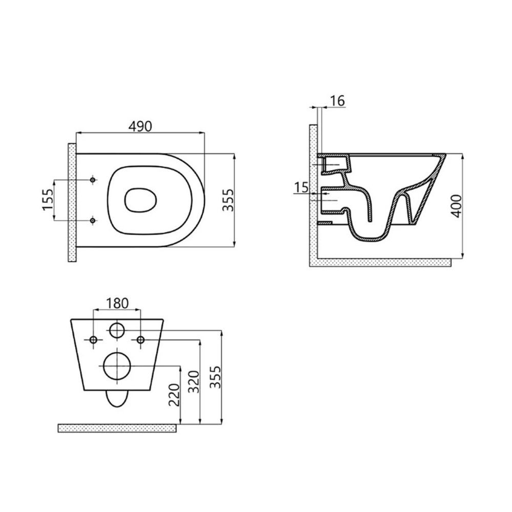 Sanovit SLIM AVVA fali WC perem nélküli + Brilla Slim L ülőke (rövid: 49cm)
