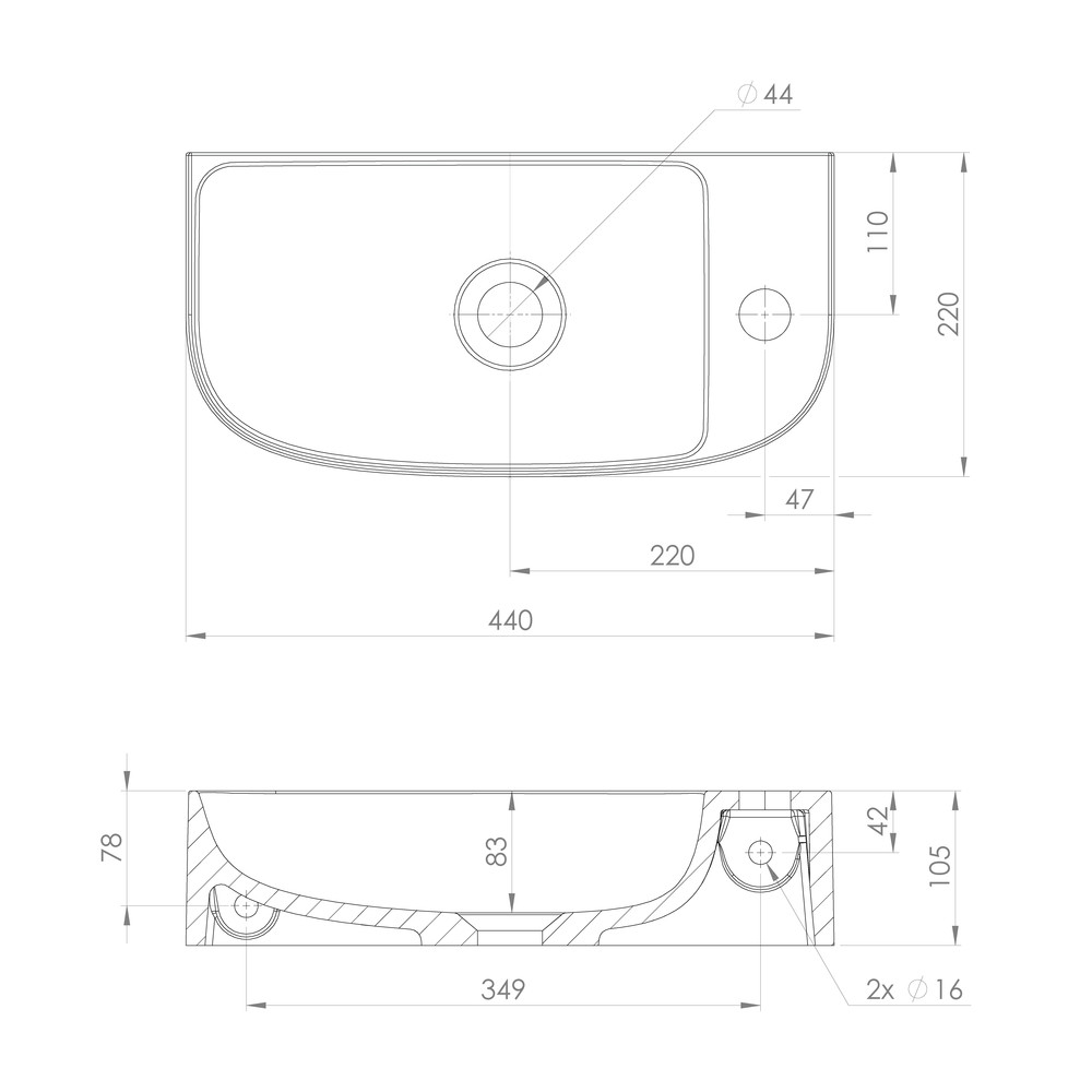ALGA öntöttmárvány mosdó, 44x22cm