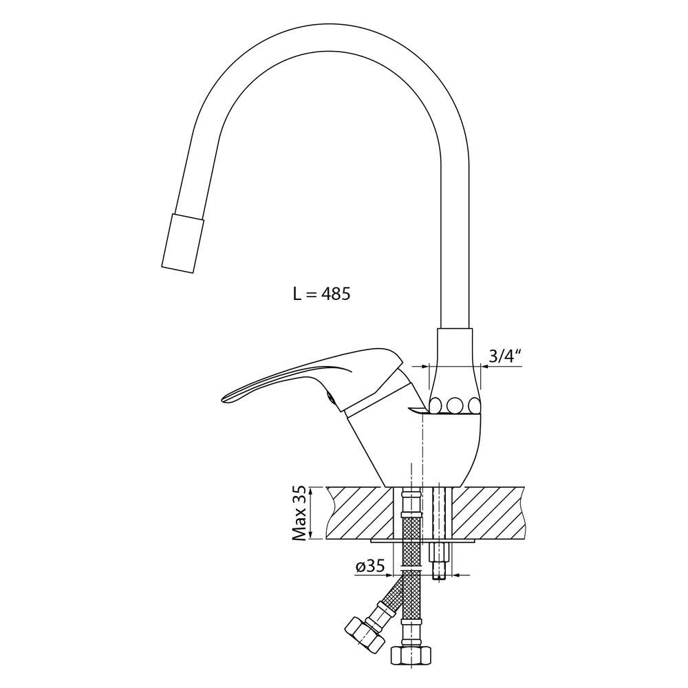 Sapho/Aqualine KASIOPEA 35 álló mosogató csaptelep króm, fekete flexibilis kifolyóval (1107-65F)