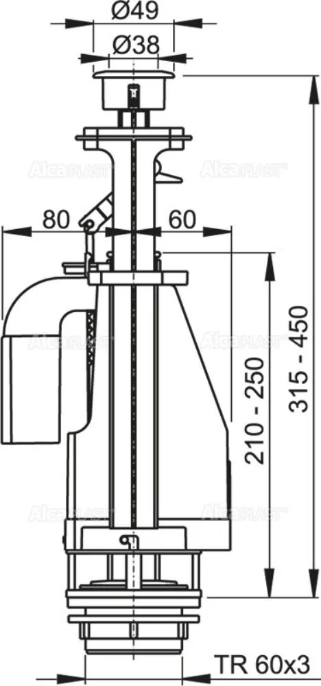 ALCA Öblítőszelep kettős gombbal, kerámia WC tartályba (A08A)
