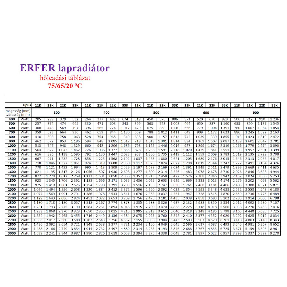 Erfer 33/DKEK acéllemez lapradiátor, 600x1100 mm méretű.