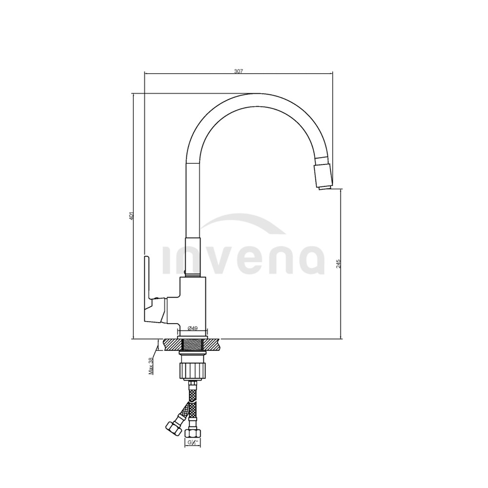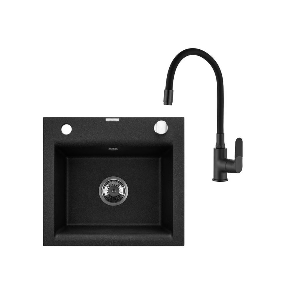 Invena TESALIA gránit mosogató, 1 medencés, csepptálca nélküli, JOGA PLUS csapteleppel, fekete