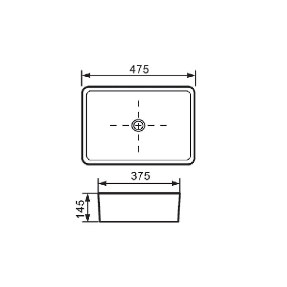 NYKS mosdókagyló, négyszögletű, asztali, 47,5 cm, fekete színben